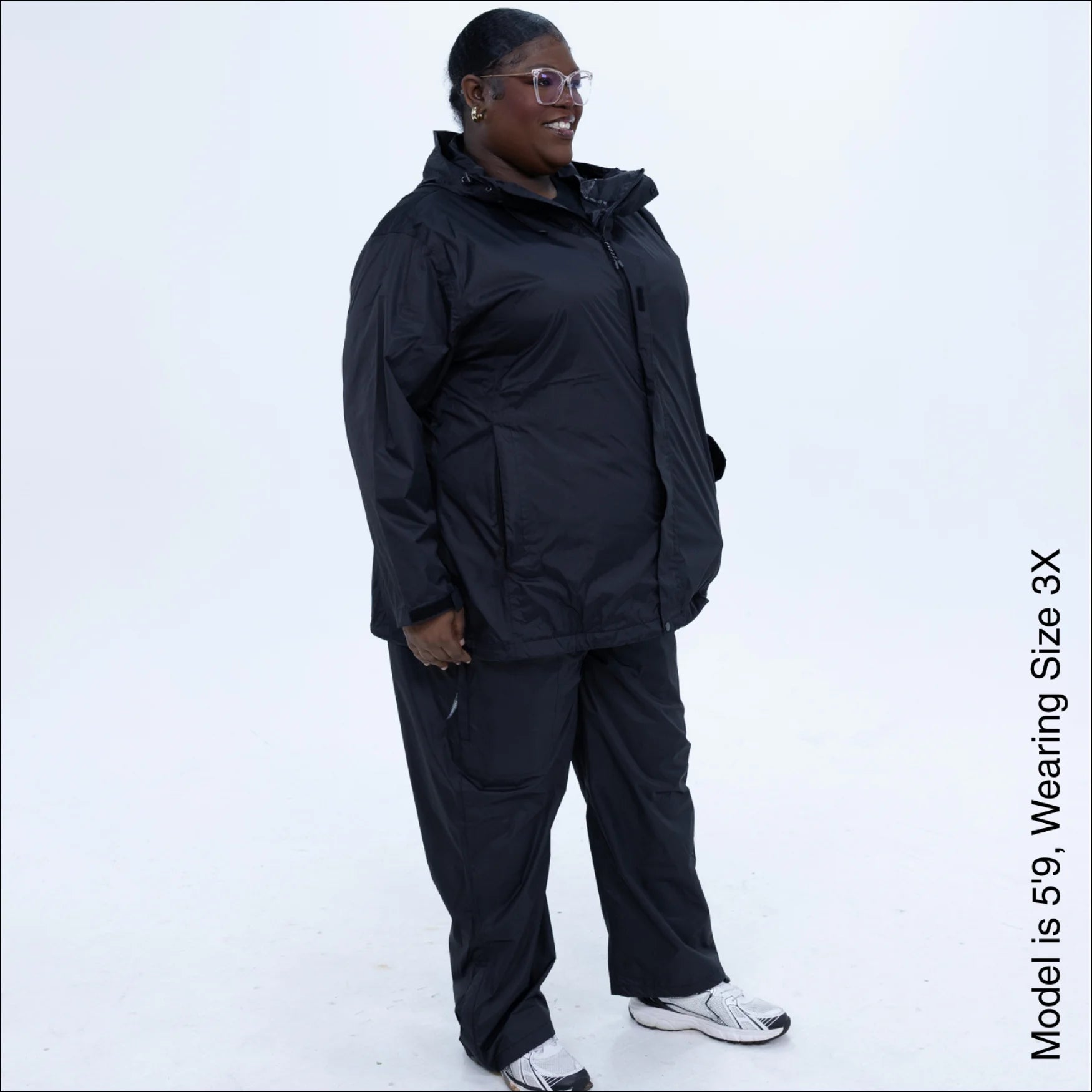 This raincoat is very nice. I went with the recommended size, which was 2 sizes larger than what I wear, and it fits perfectly. Would recommend for any large woman. Its so hard to find anything that fits.